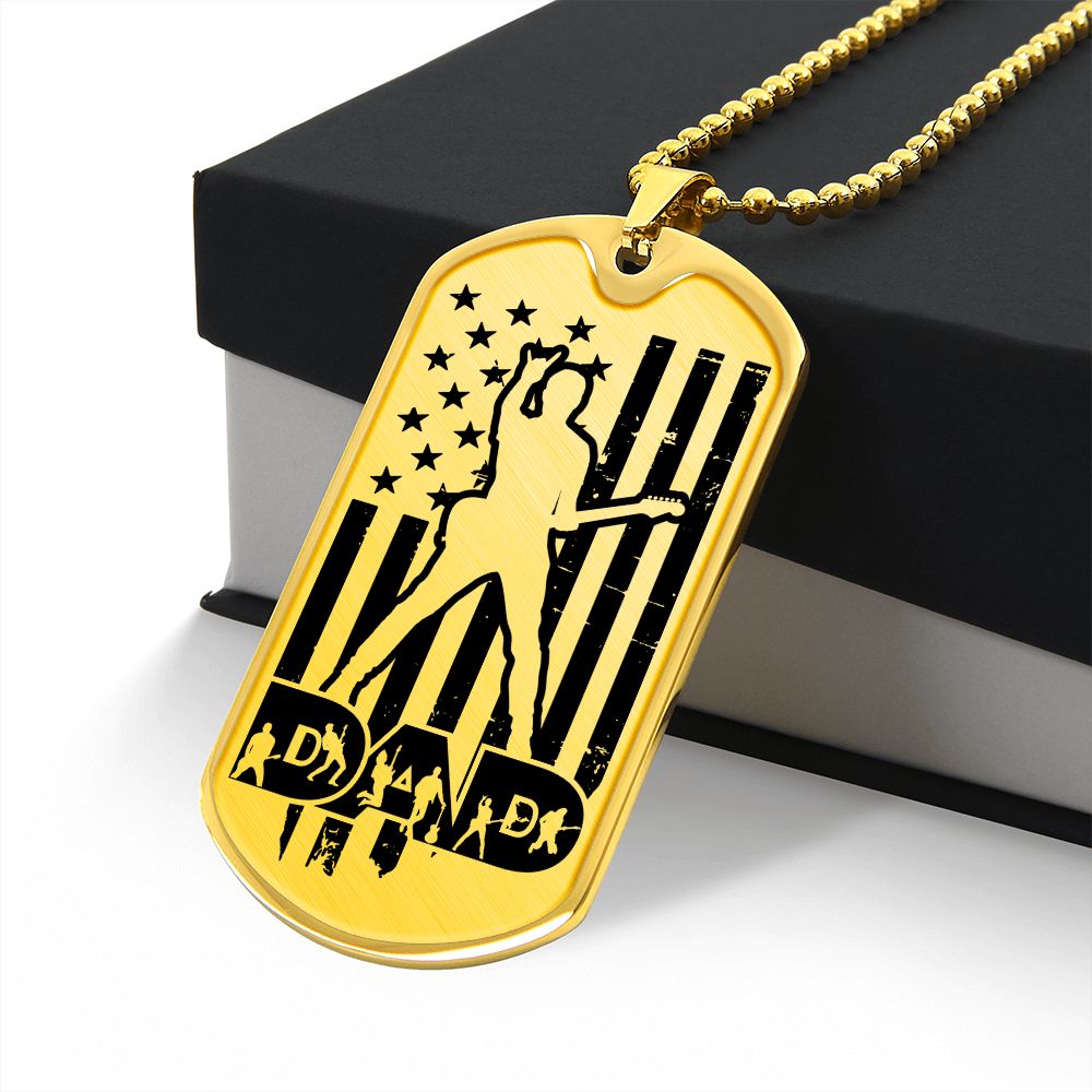 Dad Text with Guitarist Figures, USA Flag, Guitarist Outline Dog Tag Necklace for Guitarist | Military Style Necklace SDT-DTD-0109