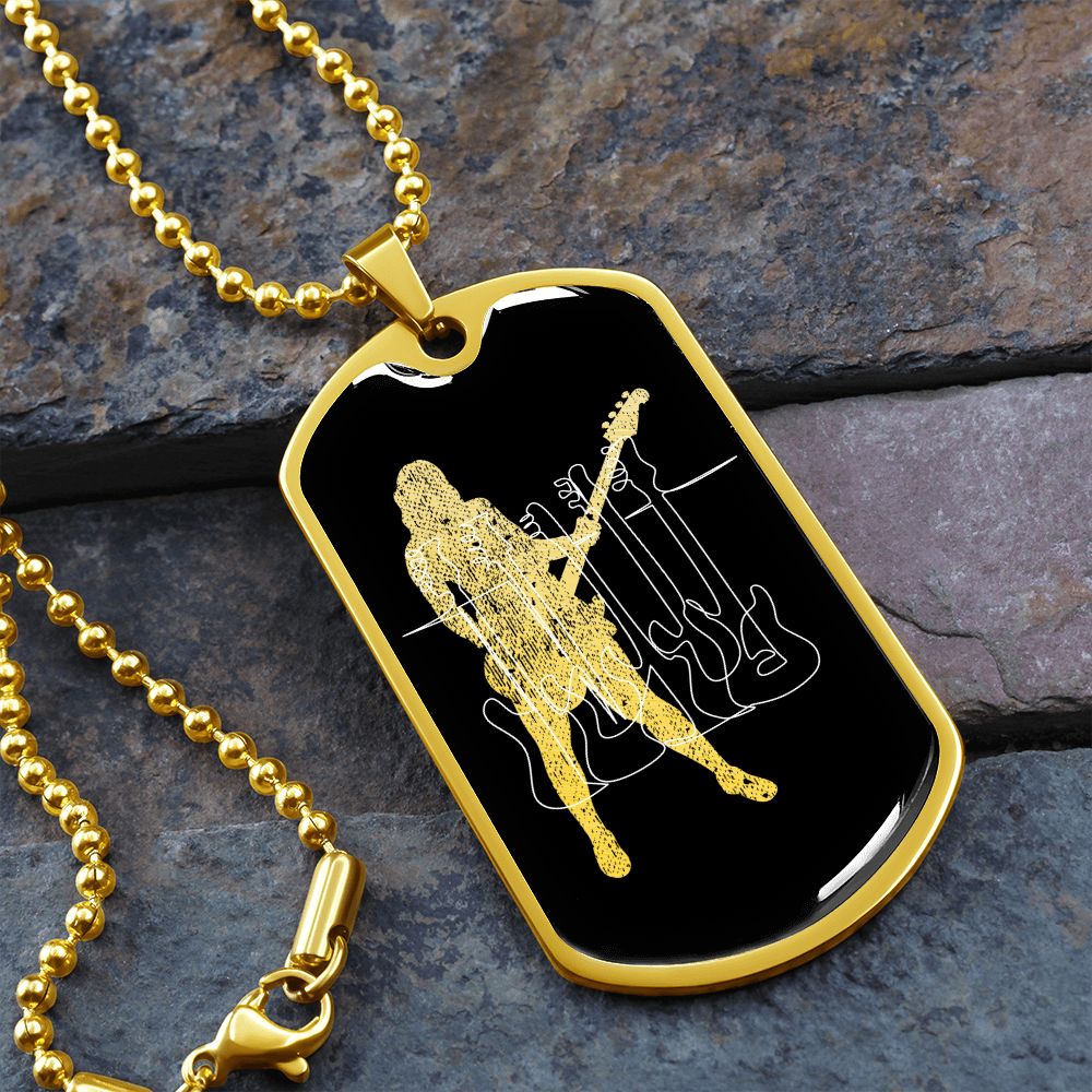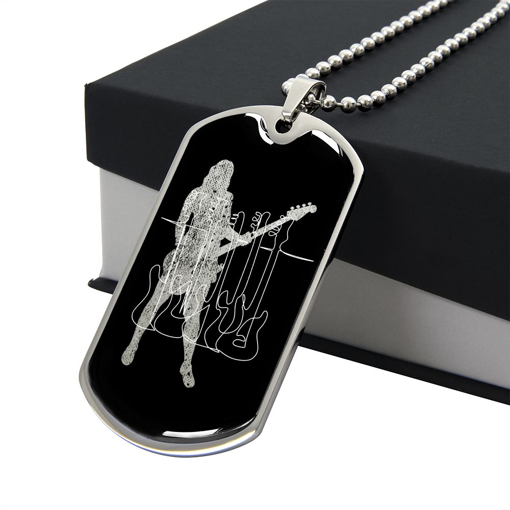Dog Tag Necklace Black | Female Bassist Cutout | Bass Guitars Distressed