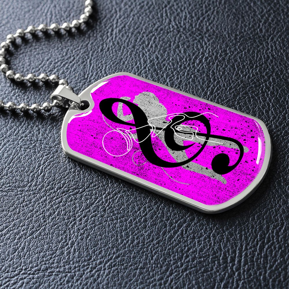 Dog Tag Necklace Pink | Female Singer Cutout | Mic | Black Clef