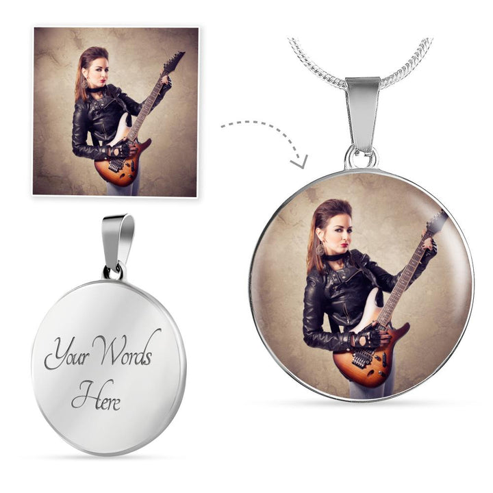 [Upload Your Photo] Female Electric Guitarist Circle Necklace