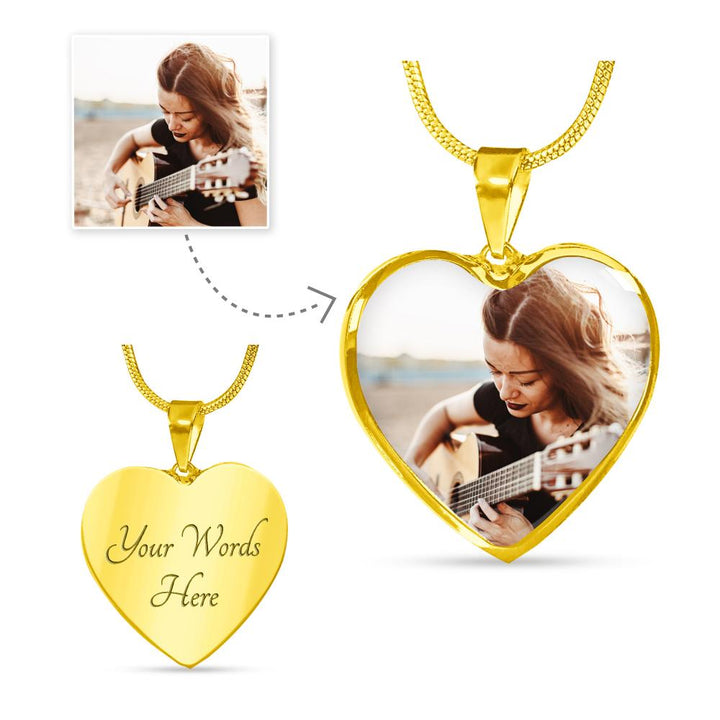 [Upload Your Photo] Female Guitarist Heart Necklace