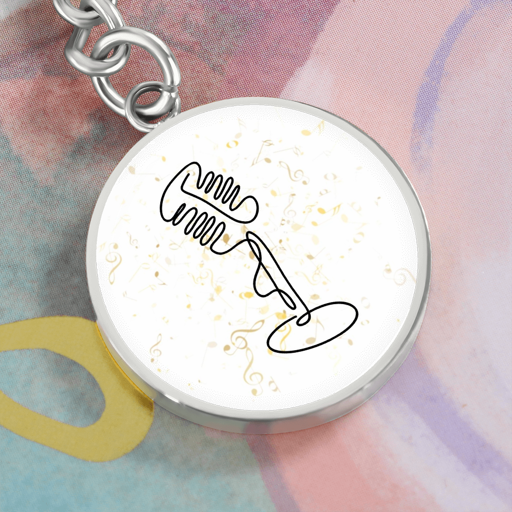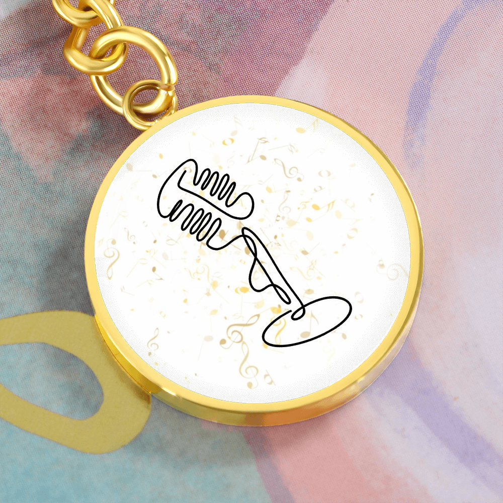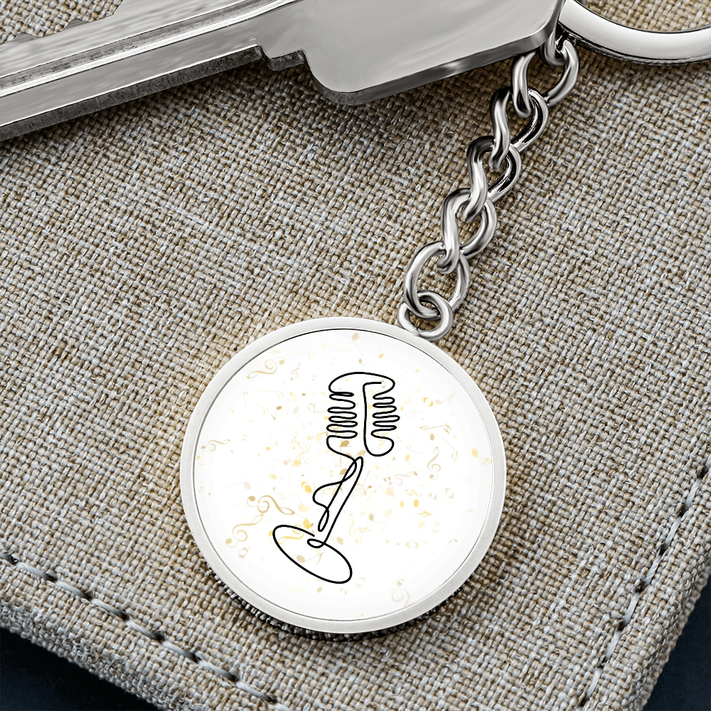 Vintage Microphone Music Notes | Circle Pendant Keychain | Gift for Singer